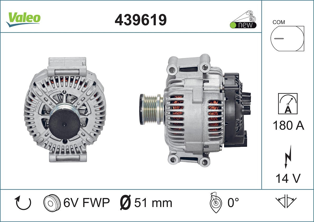 Manufacturer: Valeo Brand: Valeo Manufacturers Part Number: 439619 Product Type: Alternators Placement on Vehicle: NA EAN: 3276424396198 Weight: 8140 g Dimensions: 220 x 265 x 205cm