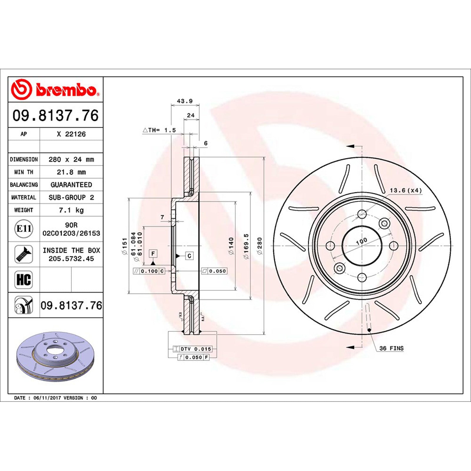 Product Type: Vented Coated Grooved Brake Disc