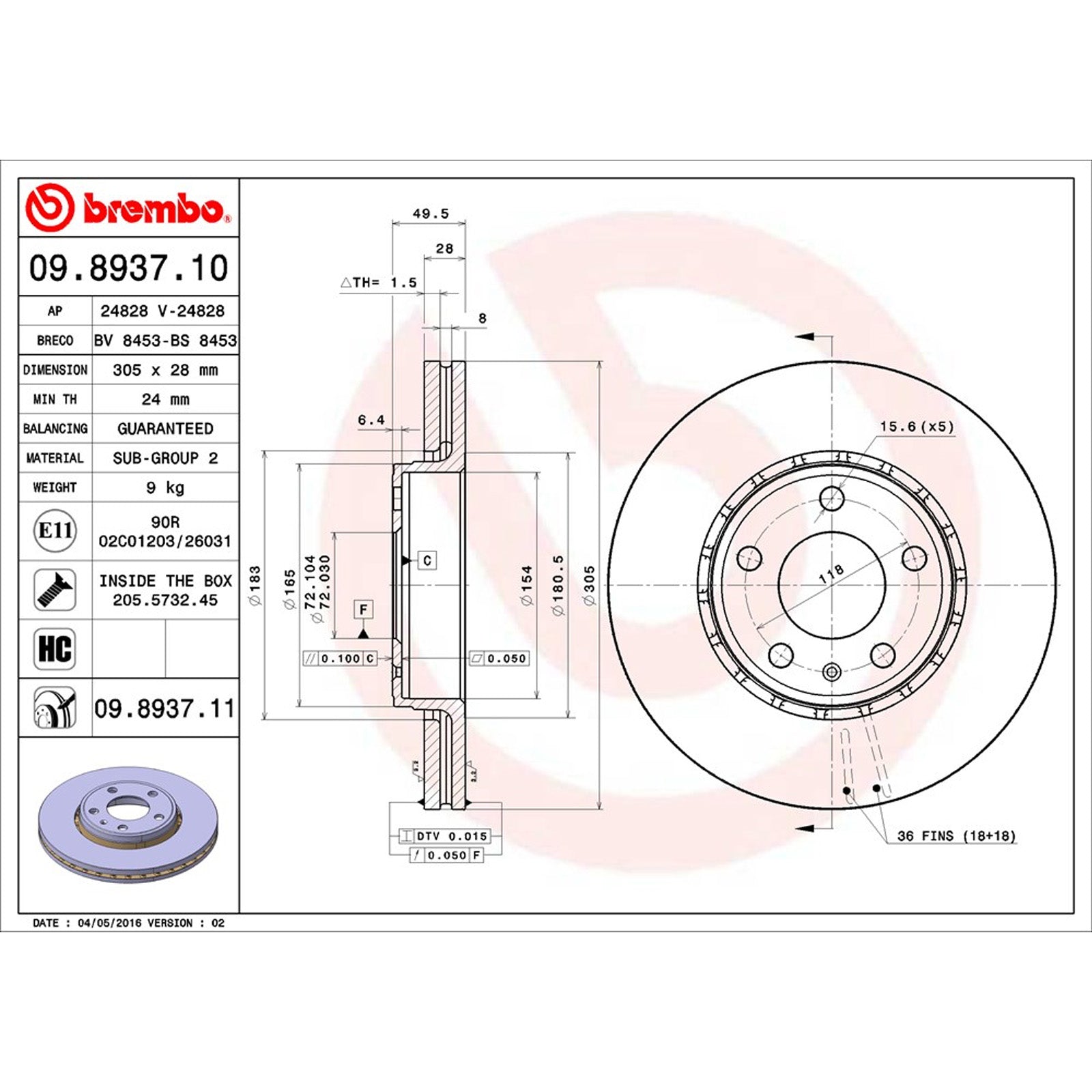 Diameter: 305mm