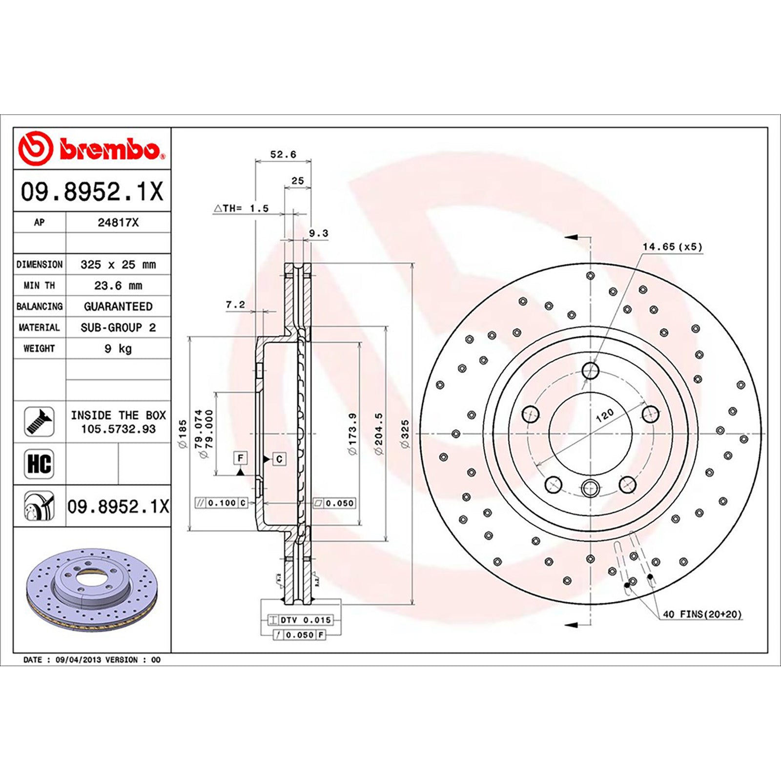 • Diameter: 325mm