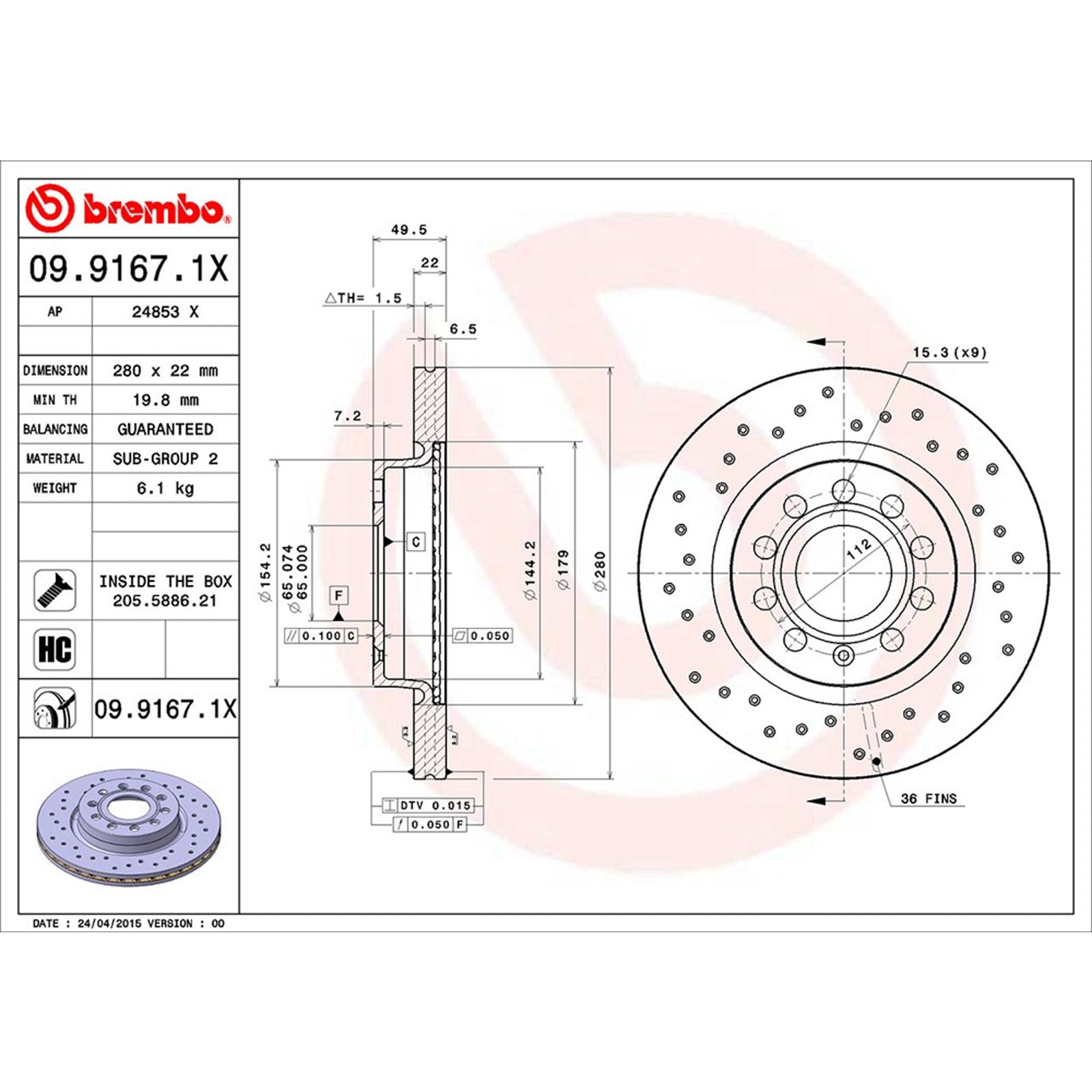 Diameter Centre Diameter: 65mm Outer Diameter: 280mm Pitch Circle Diameter: 112mm