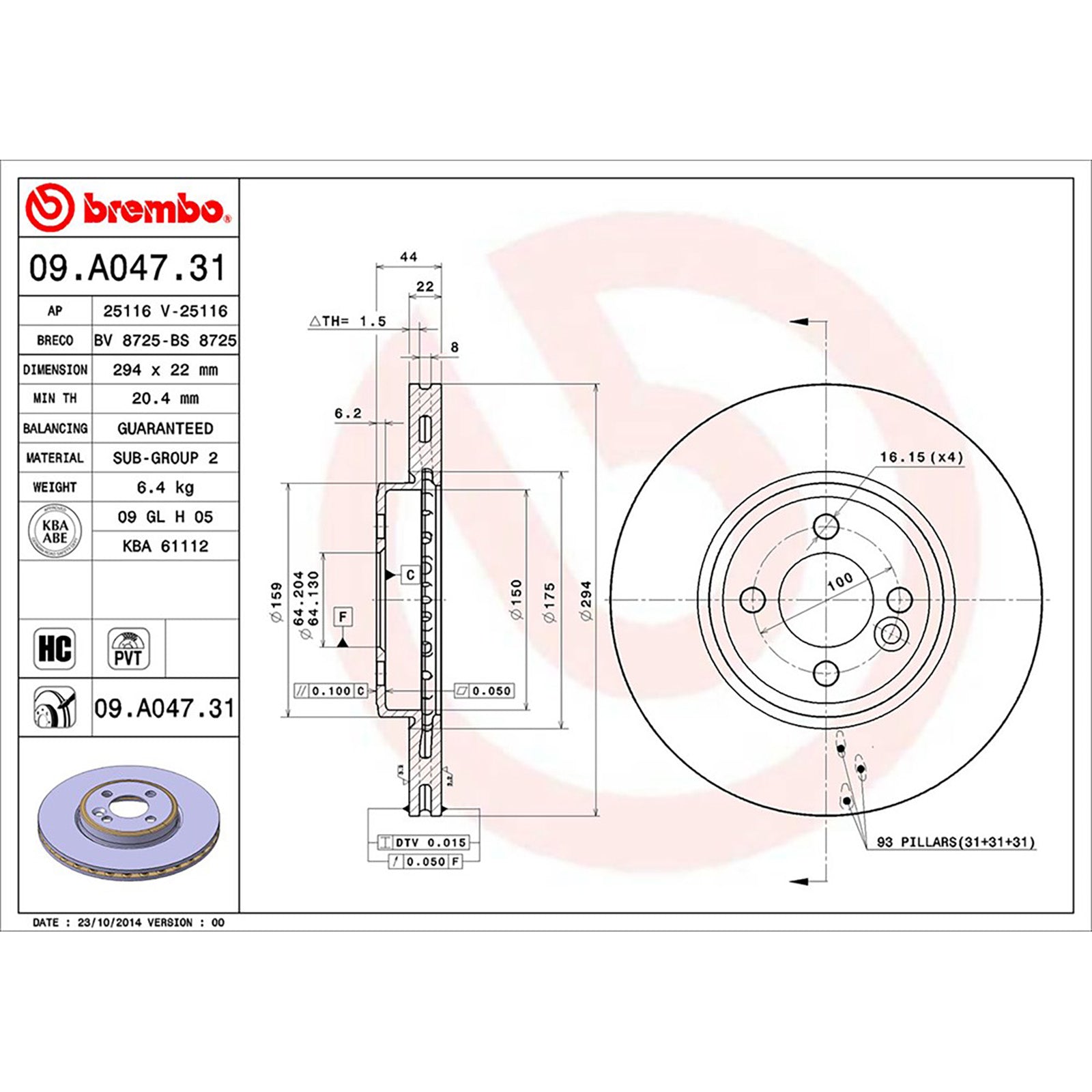 Diameter: 294mm
