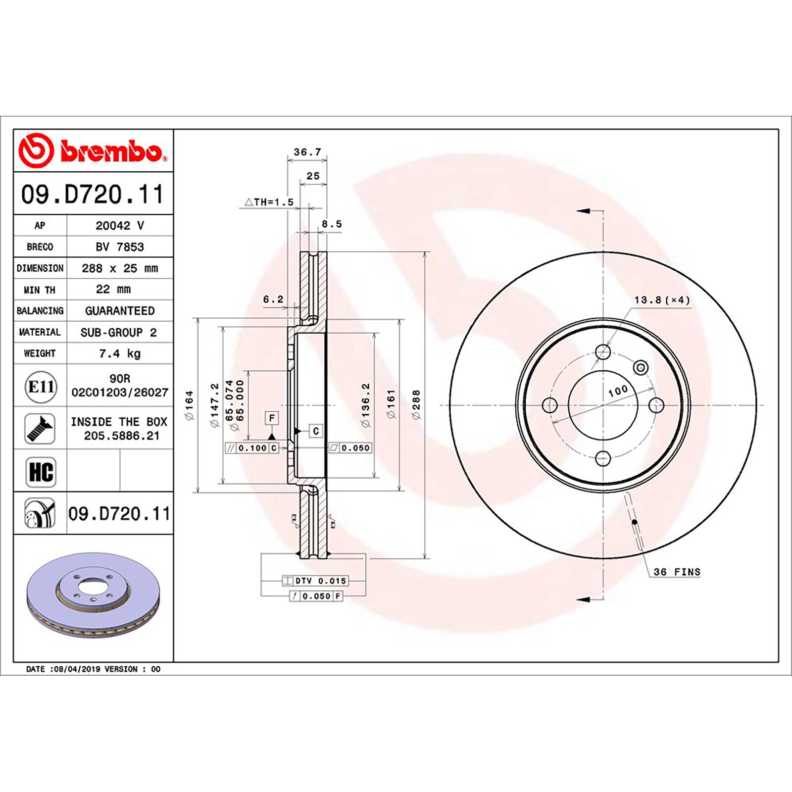 • Diameter: 288mm