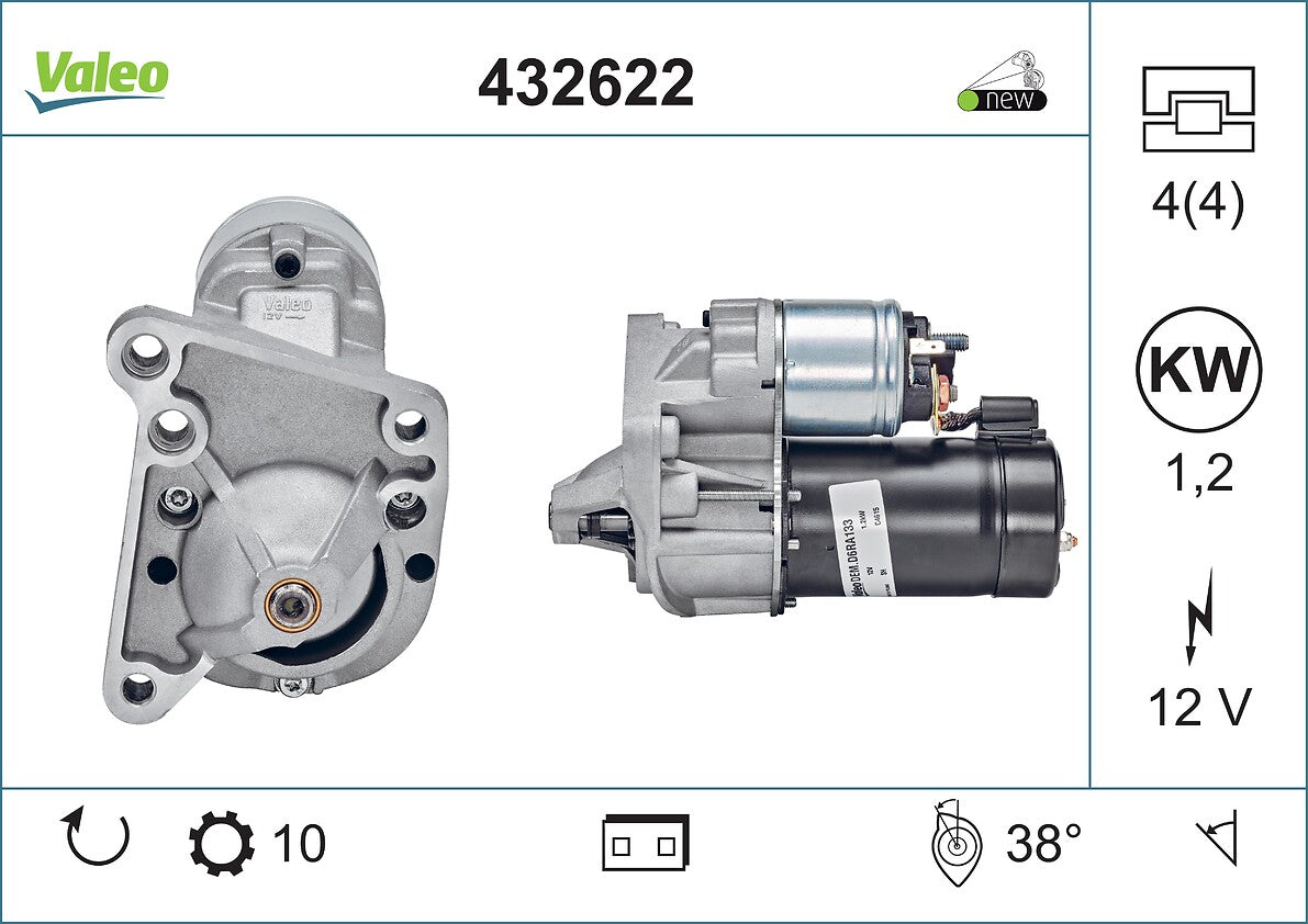 Manufacturer: Valeo Brand: Valeo Manufacturers Part Number: 432622 Product Type: Starter Motors Placement on Vehicle: NA EAN: 3276424326225 Weight: 2940 g Dimensions: 290 x 160 x 140cm